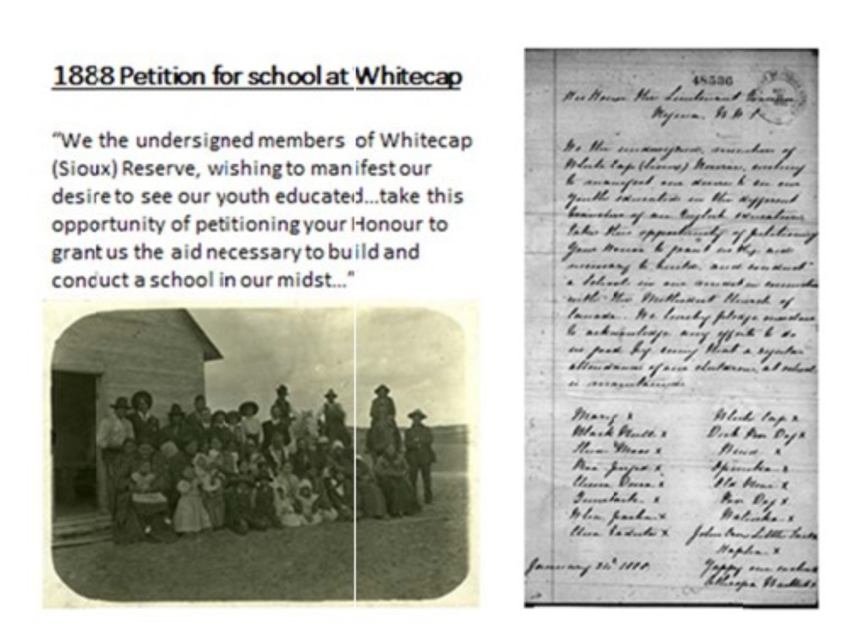Whitecap Dakota First Nation has a strong record of emphasizing learning and student achievement. Our forefathers proved their importance for education with a petition in 1888 requesting that the government place a school on our Reserve